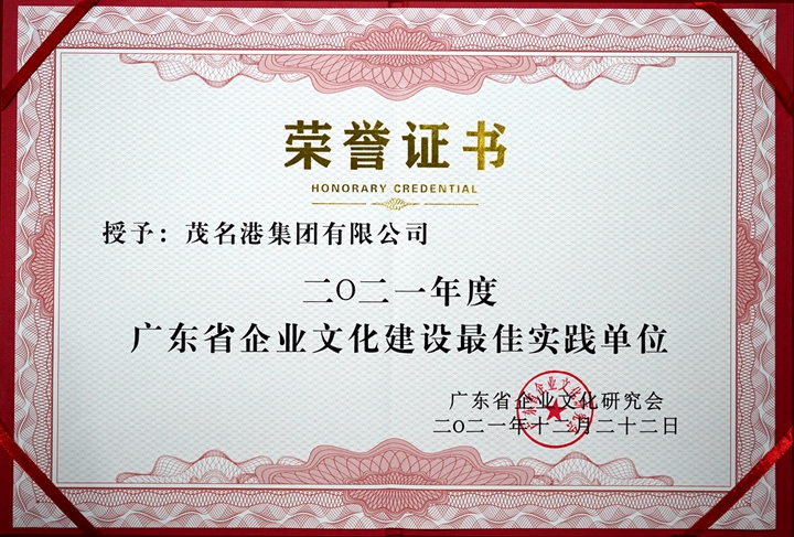 12月22日至23日,2021年廣東企業(yè)思想建設與企業(yè)文化建設工作年會在珠海隆重召開,來自廣東省企業(yè)文化研究會及相關協(xié)會、研究機構的專家學者及企業(yè)家代表齊聚珠海,共同探討黨建引領企業(yè)文化高質量發(fā)展的理念、路徑與方法。會議表彰了2021年廣東省企業(yè)文化建設最佳實踐單位、企業(yè)文化建設先進單位、企業(yè)文化建設功勛人物、企業(yè)文化建設先進個人,并舉行了頒獎儀式。茂名港集團以良好的業(yè)績和顯著的企業(yè)文化建設成果,榮獲“廣東省企業(yè)文化建設最佳實踐單位”稱號。