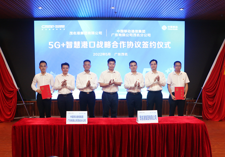 5月11日下午,茂名港集團(tuán)與茂名移動(dòng)簽署“5G+智慧港口”戰(zhàn)略合作協(xié)議,雙方攜手打造“5G+智慧港口”。茂名市政府副秘書長(zhǎng)吳再銘,茂名港集團(tuán)黨委書記、董事長(zhǎng)王志華,黨委副書記、總裁肖炳璋,茂名移動(dòng)黨委書記、總經(jīng)理林治國(guó)等一行出席簽約儀式。