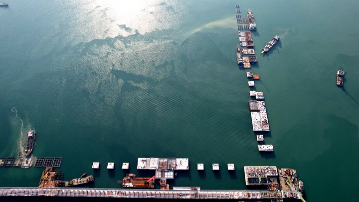本項(xiàng)目52個(gè)沉箱全部一次順利安裝完成,提前完成重要節(jié)點(diǎn)計(jì)劃,為下一步碼頭上部結(jié)構(gòu)的施工提供了工作面,也為下一節(jié)點(diǎn)目標(biāo)的如期建設(shè)創(chuàng)造了良好條件。(古智斤) |