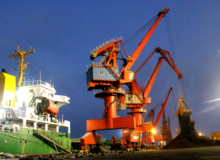 ▲港口經(jīng)營(yíng)公司碼頭晝夜作業(yè)