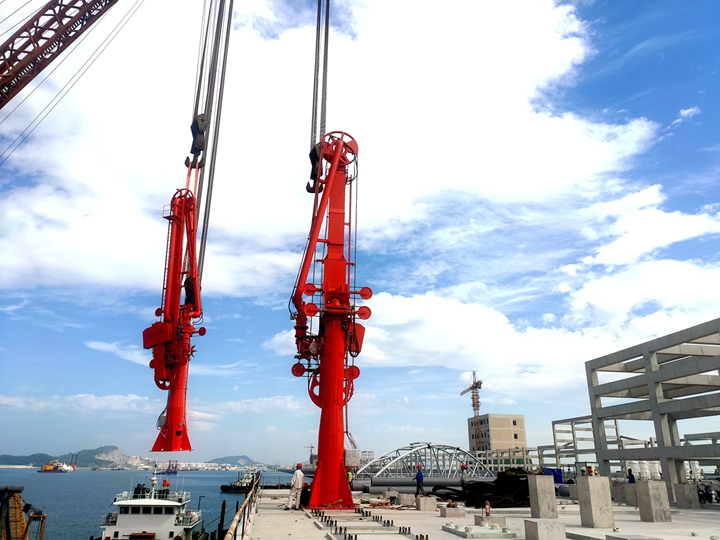 10月17日上午9時(shí),隨著起重工一聲哨響,茂名港博賀新港區(qū)東區(qū)油品碼頭項(xiàng)目首臺(tái)大型設(shè)備輸油臂通過400噸浮吊的精準(zhǔn)吊裝,圓滿完成首臺(tái)設(shè)備吊裝任務(wù)。