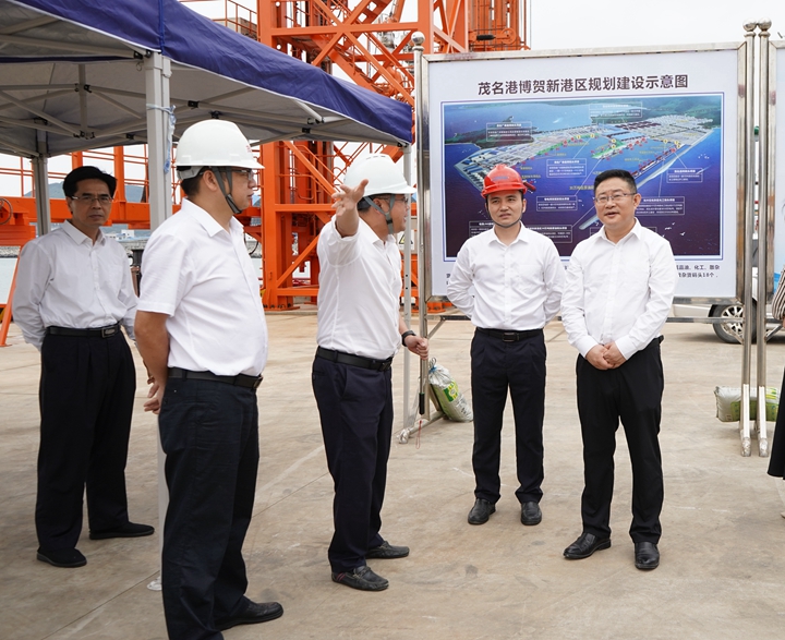 為貫徹落實(shí)“十四五”口岸發(fā)展規(guī)劃,進(jìn)一步推進(jìn)茂名市口岸重點(diǎn)項(xiàng)目建設(shè)。近日,廣東省商務(wù)廳黨組成員、副廳長(zhǎng)何軍一行到吉達(dá)港區(qū)、博賀新港區(qū)開(kāi)展口岸相關(guān)調(diào)研工作,市商務(wù)局局長(zhǎng)楊曦,濱海新區(qū)黨工委副書(shū)記黃永,集團(tuán)黨委書(shū)記、董事長(zhǎng)王志華陪同調(diào)研。