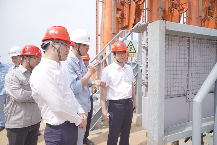 上午,肖炳璋一行深入化工碼頭和化工倉儲現(xiàn)場一線參觀,了解化工碼頭以及化工倉儲項目投產(chǎn)準(zhǔn)備工作的具體情況,聽取長興石化公司負(fù)責(zé)人以及化工倉儲項目部管理人員的匯報。肖炳璋對長興石化公司投產(chǎn)準(zhǔn)備工作取得的進(jìn)展給予了充分的肯定,他指出,一是化工碼頭即將投產(chǎn)運營,長興石化公司人員要提前到位,布置工作要全盤考慮,走在前面。二是工作要落實細(xì)節(jié),設(shè)備管理注重細(xì)節(jié),對于重點設(shè)備要每周檢查,發(fā)現(xiàn)問題及時處理,責(zé)任落實到位。三是要落實現(xiàn)場作業(yè)安全問題。設(shè)備要及時維護(hù),關(guān)注各類跑冒滴漏問題,確保碼頭和庫區(qū)具備安全生產(chǎn)的能力。