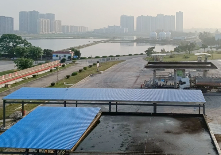 據(jù)悉,2#油庫(kù)卸車臺(tái)露天雨棚的搭建,旨在保護(hù)卸車作業(yè)免受惡劣天氣影響,確保油品在裝卸過程中的質(zhì)量與安全。雨棚的建成不僅為作業(yè)人員提供了良好的工作環(huán)境,也有效減少了雨水對(duì)油品質(zhì)量的影響和對(duì)生產(chǎn)設(shè)備的潛在損耗;同時(shí)兼顧美觀性,使之成為庫(kù)區(qū)一道亮麗的風(fēng)景線。