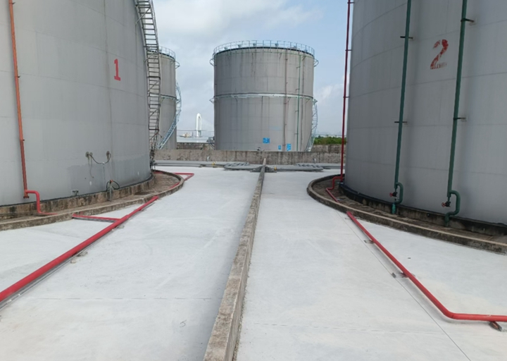 1#、2#、3#油罐區(qū)的硬底化工程也是本次優(yōu)化建設(shè)的重要一環(huán)。通過對(duì)油罐區(qū)地面進(jìn)行硬化處理,增強(qiáng)了地面的承載能力和抗?jié)B性能,同時(shí)各油罐間防火堤的完工,為庫(kù)區(qū)提供了安全可靠的防火保障。