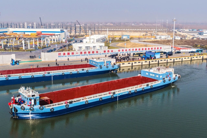 本次儀式交付的首批5艘純電動貨船及新簽訂的50艘訂單船舶,將全部投入京杭運河流域,構成山東省首條實現常態(tài)化、規(guī)模化運輸的純電動貨船綠色航線,覆蓋長三角至華北核心物流通道,單船年運力預計突破50萬噸。 山東新能船業(yè)有限公司董事長張強介紹,該船隊創(chuàng)新應用“船電分離”商業(yè)模式及集裝箱式換電技術,單船載貨量達2000噸,一次換電即可滿足核心運輸需求,全程實現零排放、低噪音運行。據測算,僅此批船舶全年即可減排二氧化碳超1300噸,環(huán)保效益斐然。 “此次交付的5艘多用途電船,搭載高容量箱式電源系統(tǒng),配套高壓大功率充換電設施,可實現15分鐘快速換電、270公里長效續(xù)航,成功構建‘船-站-云’一體化商業(yè)閉環(huán)!睂幍聲r代決策顧問委員會副主任曾嶸表示。 濟寧能源集團黨委書記、董事長張廣宇說,新能船業(yè)是濟寧能源集團聯合寧德時代、中集集團、中船集團、武漢理工大學等共同打造的新能源船舶制造項目,可研發(fā)、設計、生產滿足不同應用場景需求的內河標準化船舶系列產品。截至目前累計簽約訂單180余艘,2025年下水船舶100艘、交付80艘。與法國達飛等企業(yè)合作建造的7艘新能源船成功出口至越南、坦桑尼亞、古巴、贊比亞等國家。