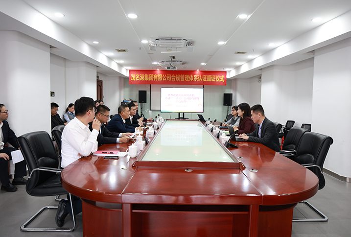王謙對茂名港集團在認(rèn)證過程中的表現(xiàn)及整體合規(guī)管理水平給予了高度評價,并正式宣布集團通過合規(guī)管理體系認(rèn)證。隨后,王謙代表中誠信認(rèn)證公司,向茂名港集團現(xiàn)場頒發(fā)ISO 37301:2021合規(guī)管理體系國際標(biāo)準(zhǔn)認(rèn)證證書與GB/T 35770-2022合規(guī)管理體系國內(nèi)標(biāo)準(zhǔn)認(rèn)證證書,并對集團表示衷心的祝賀。王謙進(jìn)行了《健全國企合規(guī)為高質(zhì)量發(fā)展保駕護航》專題內(nèi)容的分享。